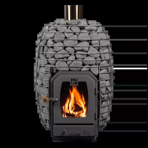 Sophisticated design Wood-burning 26.6kW For sauna rooms from 353-918 cu Ft. 111 lb stone capacity (requires 3 boxes sold separately)