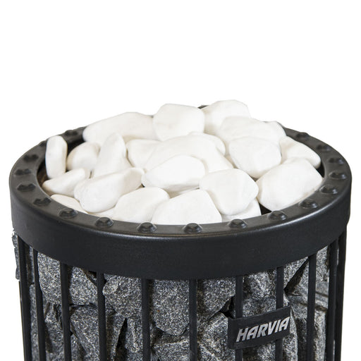 2"- 4" (5-10 cm) white decorative stones Can be used with all Harvia heater models Non-harmful ingredients Wash before use For decorative, top lay...