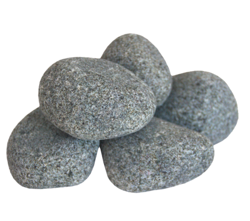 Olivine Diabase Granite sauna stones Rounded shape to compliment heater design Durable with high-heat capacity Stones range from 2" to 4" (5-10 cm)