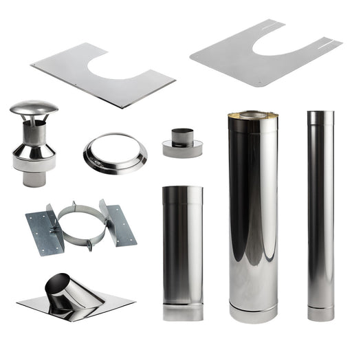 Black powder coated steel CE Marking Mineral wool insulation material Mounts in vertical position works with wood-heated stoves works with smaller...