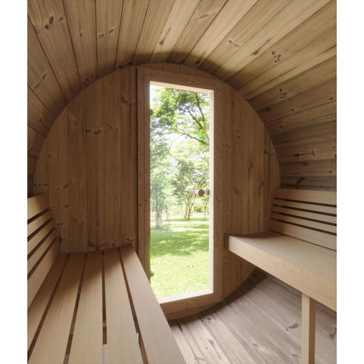 Model E6W Sauna Barrel Thermo-Spruce materials (lasts 2X longer than Cedar) Designed for ergonomic sauna bathing experiences Spacious 6'-5" interio...