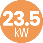 The Harvia has several different power options. The heater you're currently viewing has 23.5 kW (kilowatts) of power and is rated for use in saunas with an "adjusted volume" of 529 - 1,059 ft³ (which includes most saunas for 10+ people). If your sauna's adjusted volume doesn't fall within this range, please select the power option in this toolbar that meets your needs.